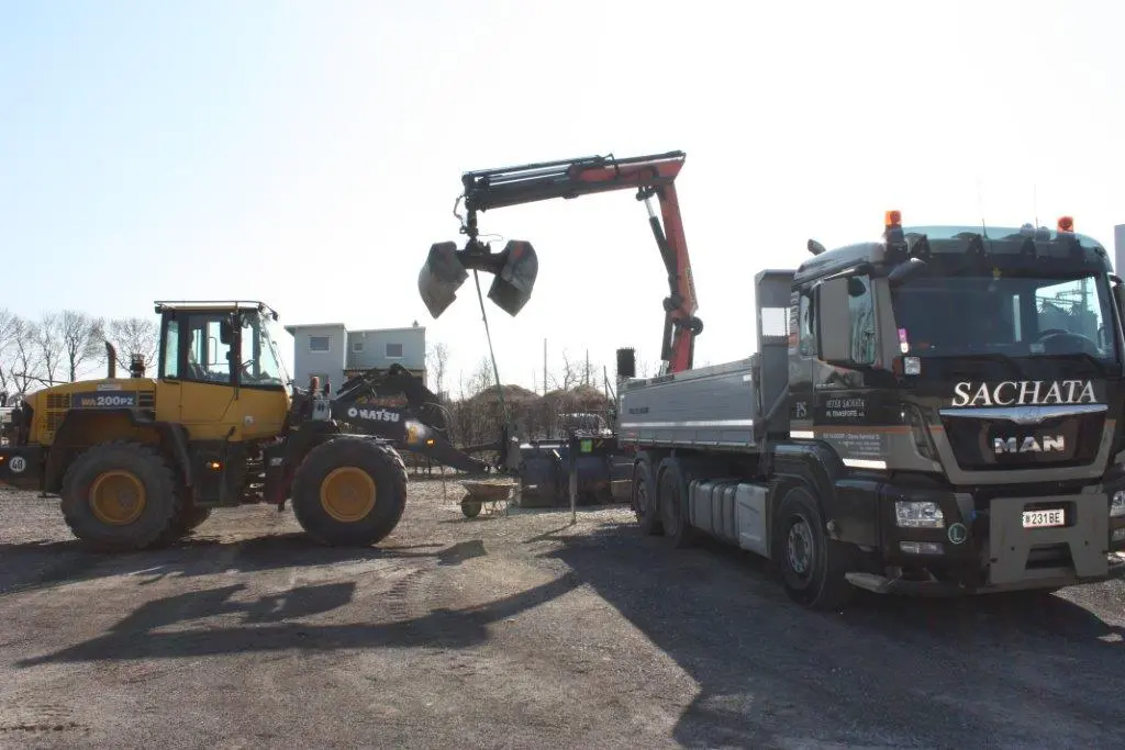 Unsere Leistungen: Verkauf und Zustellung von Rasenerde und Humus, Schneeräumung, Transport von Baumaterialien, Aushub von Schwimmbädern und Kellern inkl. Abtransport von Erdreich und Bauschutt